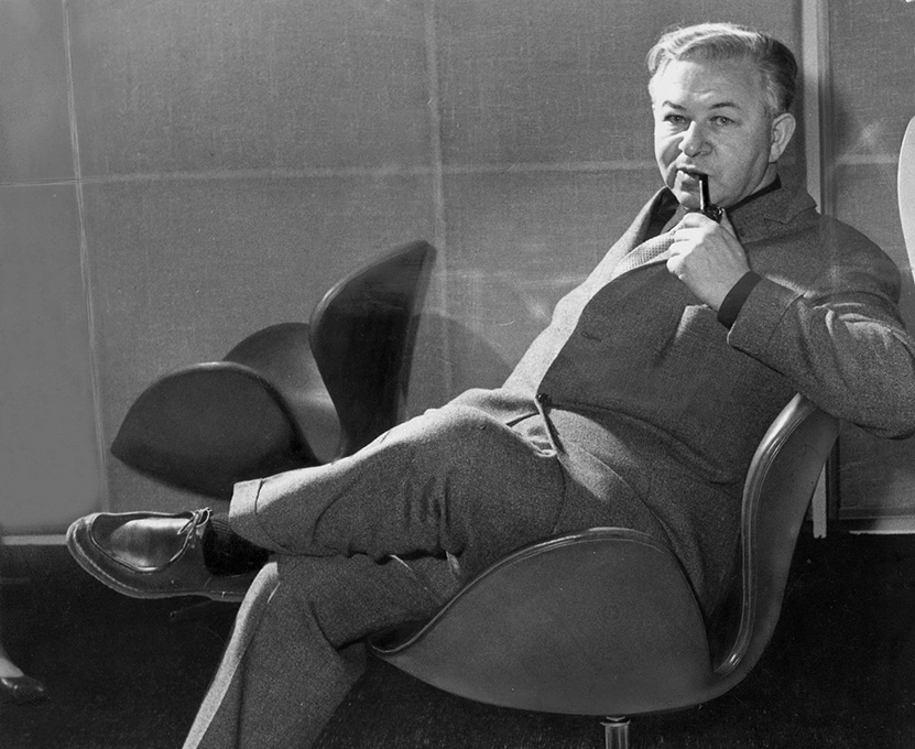 フリッツ・ハンセン社はこの技術を家具に応用する権利を持っており、新しもの好きなヤコブセンは彫刻家とともに原型を作り上げ、スワンとエッグの名作チェアが誕生することとなります。今では一般的な椅子のシェル部分が回転する構造も、当時のラウンジチェアでは革新的な機能で、横の人を直接見ながらコミュニケーションが取れるようになったのです。