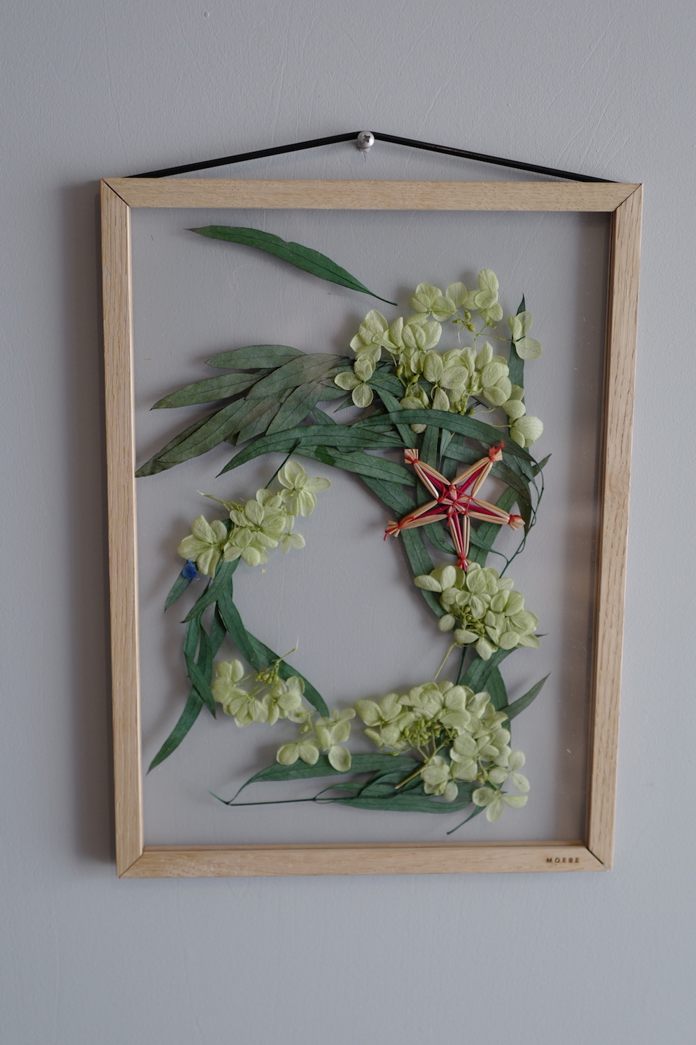 アトラクトのオフィシャルオンラインショップにはまだアップがありませんが、昨今インテリアフレームでは大変人気のあるデンマークのMOEBE(ムーべ)フレームに、ドライフラワー加工した花々を花水木さんにアレンジしていただきました。