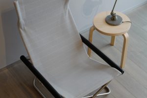 特徴的なレッグ部分は、オークの無垢材で3つの三角形を組み合わせた構造で、合計9辺になることからエンネア(9)という名称が冠されました。