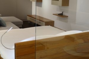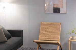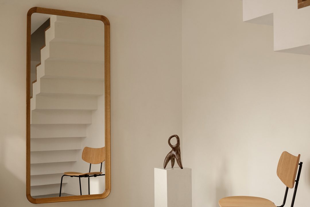 特徴的なレッグ部分は、オークの無垢材で3つの三角形を組み合わせた構造で、合計9辺になることからエンネア(9)という名称が冠されました。