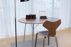 円形天板の曲線と直線的な脚の組み合わせが美しく、どのアングルからみてもエレガントな空間を演出してくれます。